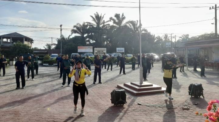 Senam Kesehatan Jasmani di halaman Mapolsek Kandis.