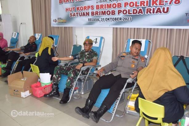 Sambut HUT Ke-78 Korps Brimob Polri, Satbrimobda Riau Adakan Donor Darah