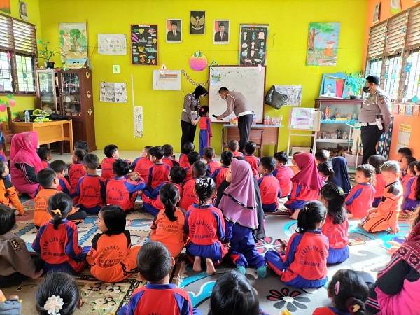 Sat Lantas Polres Kampar Edukasi Anak TK Tentang Berlalu Lintas