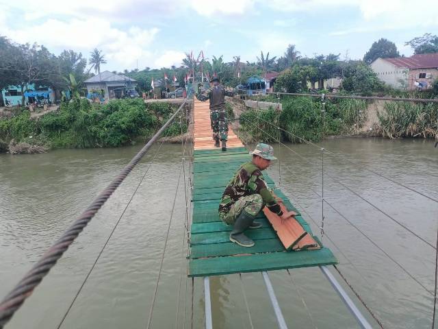Satgas Gulbencal Kodam I/BB Lanjutkan Renovasi Jembatan Gantung Garuda di Deli Serdang