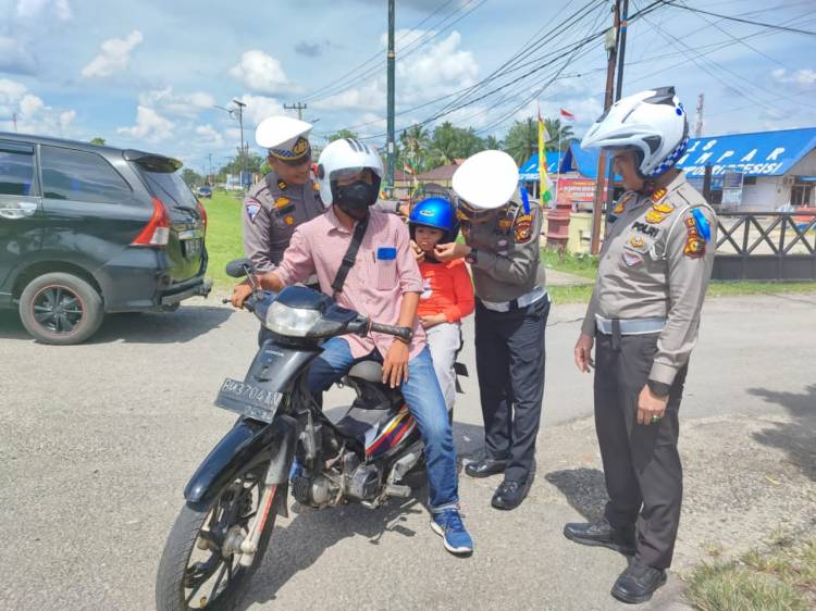 Satlantas Polres Kampar Kampanyekan Tertib Helm pada Anak Usia Dini