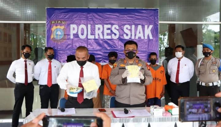 Kapolres Siak, AKBP Gunar Rahadiyanto, S.I.K,. M.H di dampingi Kasat Narkoba Polres Siak, AKP Sihol Sitinjak, S.H.