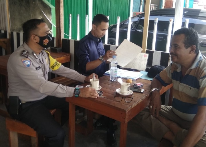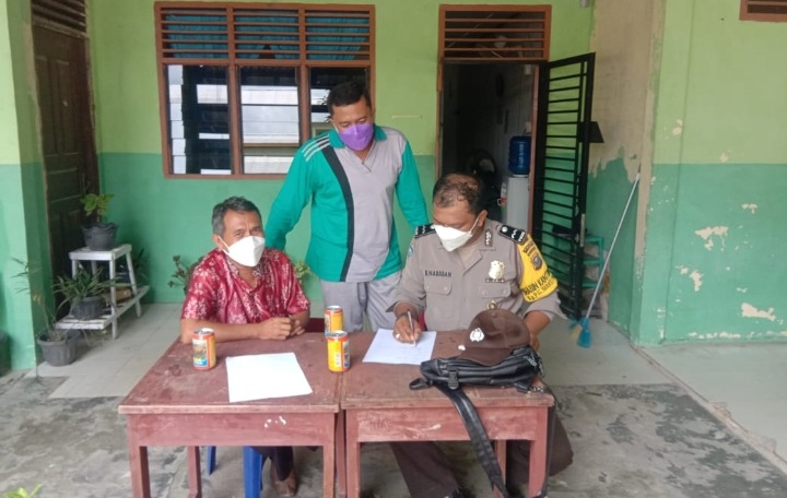 Bhabinkamtibmas Polsek Tualang Kampung Tualang Bripka M Eko saat koordinasi dengan Pemerintahan Kampung Tualang dalam percepatan vaksinasi.