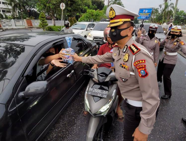 Sembari Menjalankan Tugas, Ditlantas Polda Riau Berikan Ratusan Paket Takjil Kepada Masyarakat