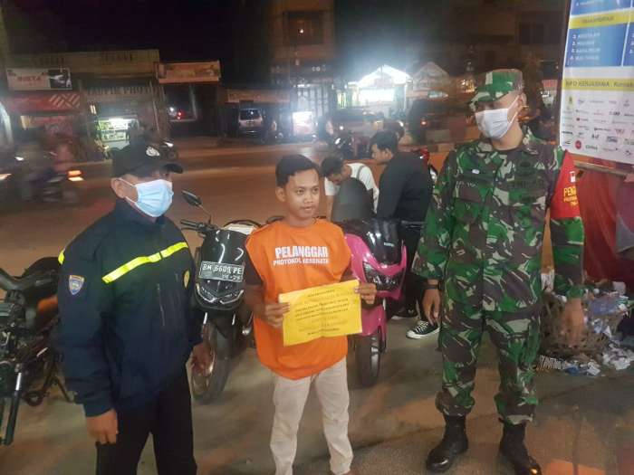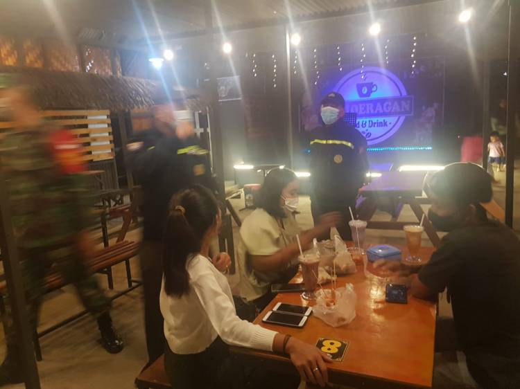 Personil Polsek Bagan Sinembah bersama TNI dan Satpol PP saat melakukan Operasi yustisi di Cafe dan pajak lama.