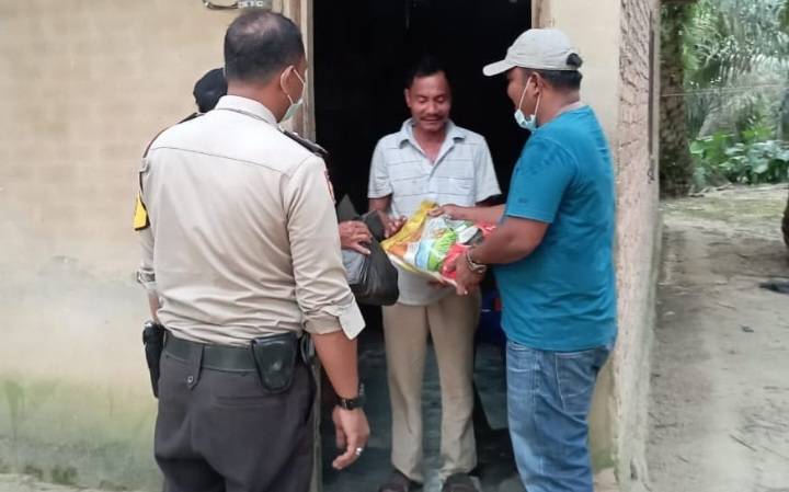 Sisihkan Gaji, Bhabinkamtibmas Pinang Sebatang Barat Aipda Beni Nababan Berikan Paket Sembako Kepada Warga