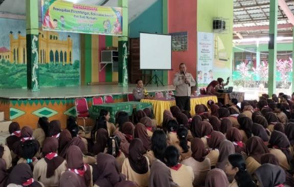 Sosialisasi bullying dan bahaya narkoba di SMPN 3 Tualang oleh personil Polsek Tualang.