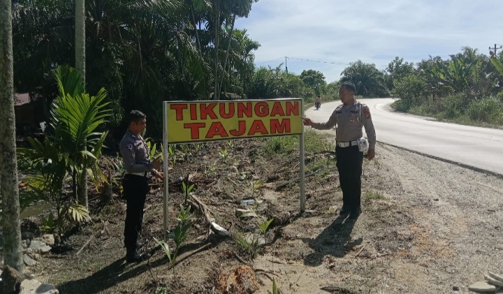 Tekan Angka Laka, Unit Lantas Polsek Tualang Pasang Spanduk Dititik Rawan