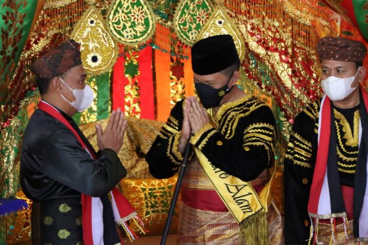 Selanjutnya, usai pengalungan selendang tanda penebalan gelar kehormatan adat dari pemangku adat Kuantan Singingi Kapolda Riau Irjen Pol Agung Setya Imam Efendi SH SIK MSi secara resmi menyandang gelar Kehormatan Datuk Bandaro Alam. (jss)