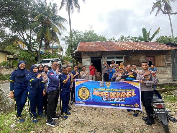 Tim Jumpe Romansa Polda Riau saat menyerahkan kursi roda dan sembako untuk Lansia di Pekanbaru, Jumat (3/3/2023).