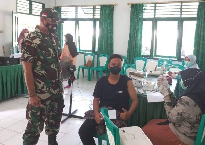 Personil Koramil 04/Perawang Kodim 0322/Siak, kawan vaksinasi masyarakat.