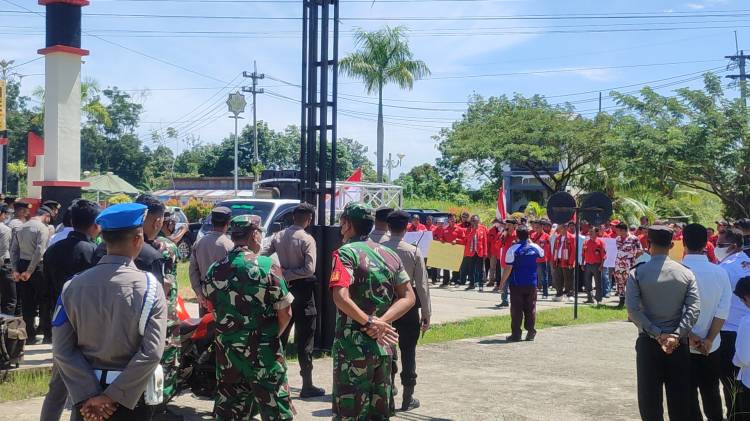ROKAN HULU, datariau.com - Personil gabungan TNI Polri dari Koramil 02 Rambah Kodim 0313/KPR dan Polres Rohul memantau kegiatan aksi damai yang digelar oleh Organisasi Dewan Pimpinan Cabang Pemuda Batak Bersatu (DPC-PBB) Rokan Hulu, Riau, Senin (17/10/2022).