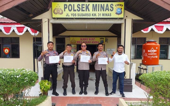 Kapolsek Minas AKP Wan Mantazakka SH MH bersama jajaran Polsek Minas dan perwakilan PT PHR.