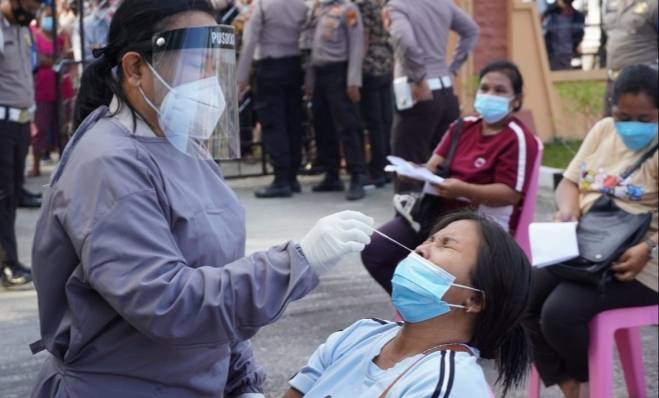 Rapit test antigen salah seorang warga di Mapolres Siak.