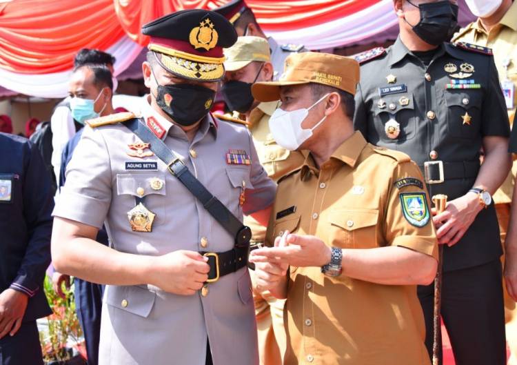 Wabup Bagus Santoso bersama Kapolda Riau Irjen Pol Agung Setya Imam Efendi menghadiri upacara penutupan pendidikan pembentukan Bintara Polri Sekolah Polisi Negara (SPN) Polda Riau angkatan (45) Tahun Ajaran 2020-2021.