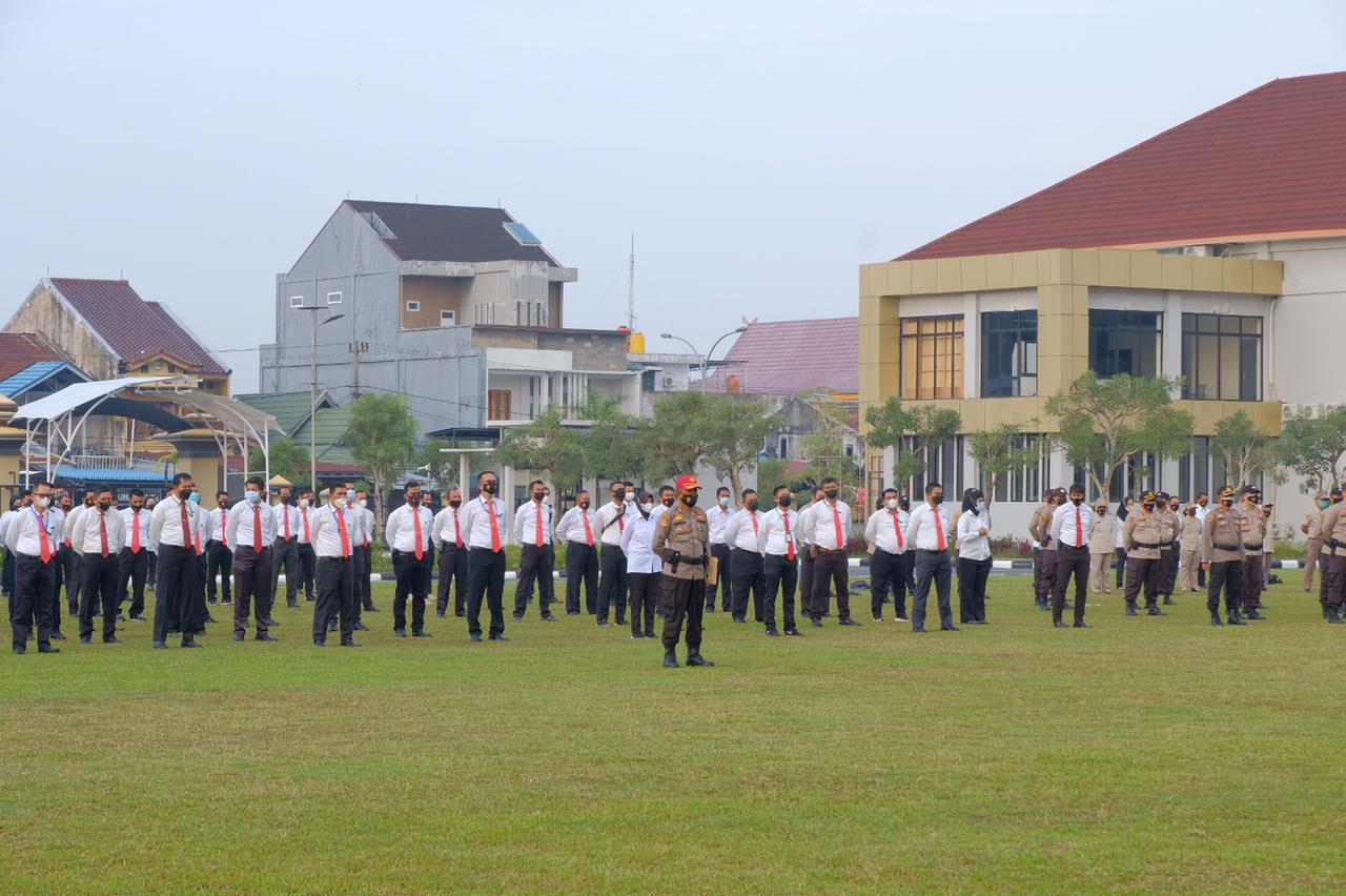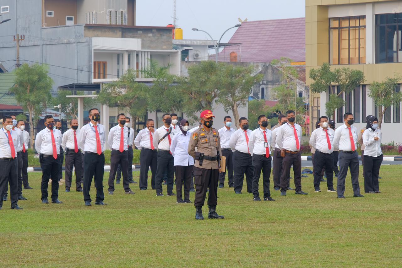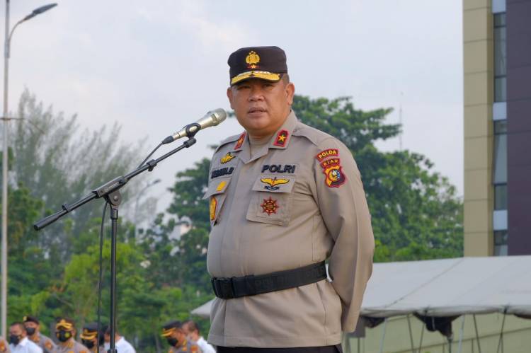 Pekanbaru, datariau.com - Wakapolda Riau, Brigjen Pol Tabana Bangun Msi memberikan penekanan kepada seluruh personil Polda Riau dalam Gelar Apel Pagi di Lapangan Apel Utama Markas Komando Polda Riau jalan Pattimura no 13 Kota Pekanbaru, Senin (24/05/2021) pagi.