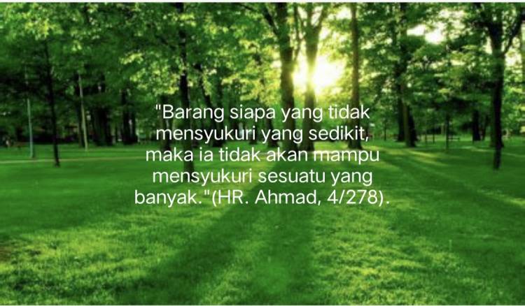 “Barang siapa yang tidak mensyukuri yang sedikit, maka ia tidak akan mampu mensyukuri sesuatu yang banyak.” (HR. Ahmad, 4/278. Syaikh Al Albani mengatakan bahwa hadits ini hasan sebagaimana dalam As Silsilah Ash Shohihah no. 667).