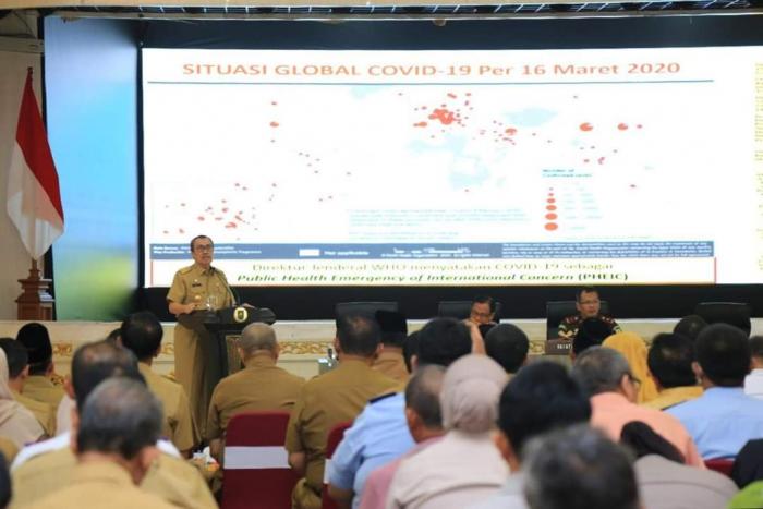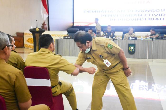 Bupati Kampar Ikut Rakor Penanggulangan Corona Bersama Gubri