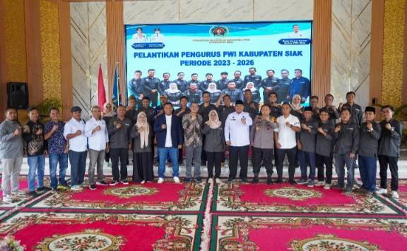 Bupati Siak Drs H Alfedri MSi pada pelantikan PWI Siak periode 2023-2026.