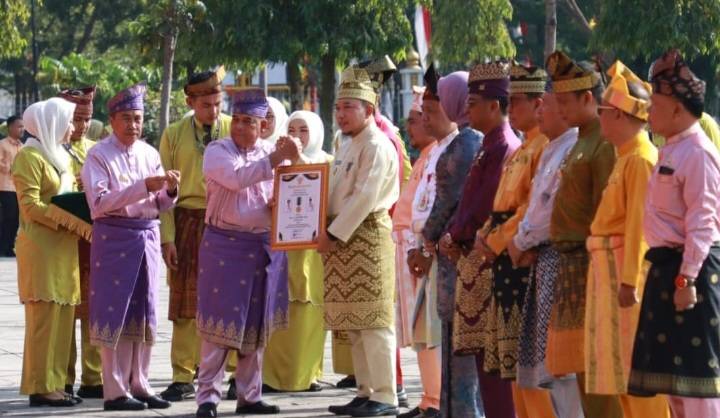 Bupati Siak Terima Penghargaan dari Gubri Syamsuar Pada Apel HUT Ke-66 Provinsi Riau