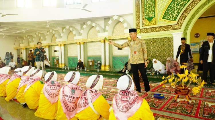ROHIL, datariaucom - 282 Calon Jemaah Haji (CJH) kloter 14 asal Rokan Hilir, Provinsi Riau dilepas menuju Embarkasi Batam dari mesjid Al Ikhlas, Bagansiapiapi, Rokan Hilir, Riau, Jumat (24/5/2024) pagi. Keberangkatan calon jemaah haji asal Rohil tersebut diwarnai isak tangis keluarga.
