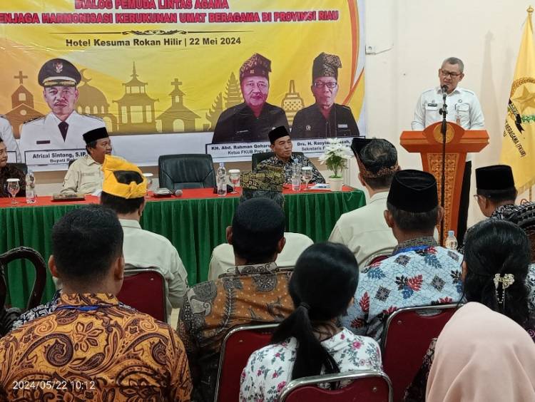 ROHIL, datariau.com - Dalam rangka menjaga harmonisasi kerukunan umat beragama di provinsi Riau, khususnya di Kabupaten Rokan Hilir (Rohil), Forum Kerukunan Umat Beragama (FKUB) bersama Badan Kesatuan Bangsa Politik (Kesbangpol) Provinsi Riau mengadakan dialog pemuda lintas agama di Rokan Hilir, Rabu (22/5/2024) di Aula pertemuan salah hatu hotel di Bagansiapiapi, Kecamatan Bangko, Rohil Provinsi Riau.
