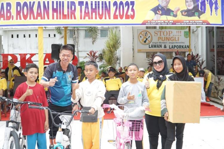 Pelepasan ratusan peserta ditandai dengan pengibaran bendera start oleh Bupati Rohil yang diwakili Sekda Rohil H Fauzi Efrizal didampingi ketua PKK Sanimar Afrizal kepala Bank Riau dan dihadiri Asisten, Wadanramil 01 Bangko Kapten Arh Simson Siregar, para kepala OPD, Ketua GRMB Nalladia Ayu Rokan dan berbagai unsur lainnya.