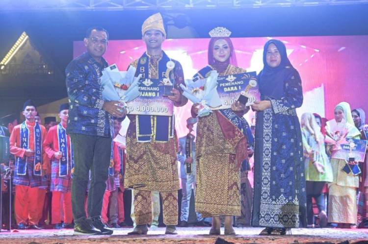 Kepada para pemenang lomba pemilihan Bujang Dara Rohil Tahun 2024 diberikan uang pembinaan, trophy dan piagam penghargaan. (Rls)