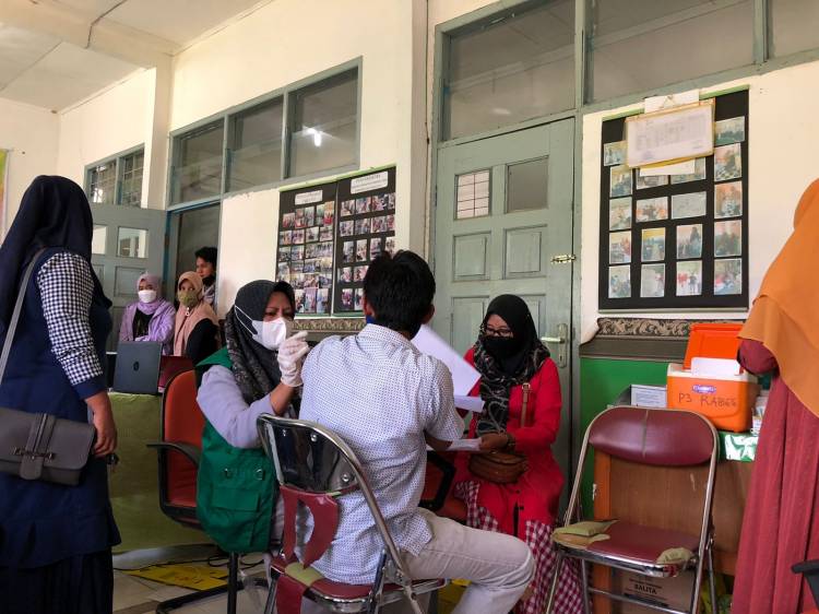 Vaksinasi massal di Puskesmas Salo, Kampar.