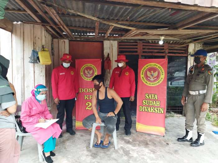 PEKANBARU, datariau.com - Badan Intelijen Negara Daerah Riau kembali melaksanakan kegiatan vaksinasi lanjutan ke rumah warga di Pekanbaru, Kamis (12/8/2021).
