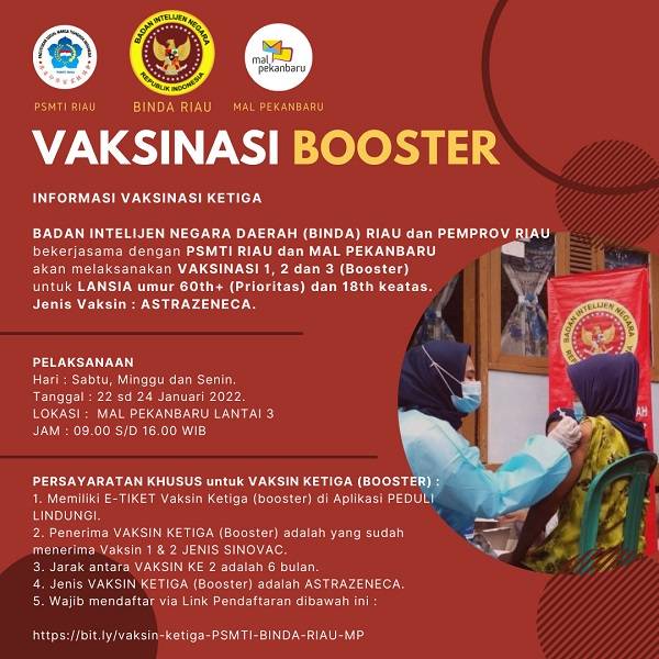 BIN Riau Gandeng PSMTI Adakan Vaksin Booster di Mal Pekanbaru, Daftar di Sini