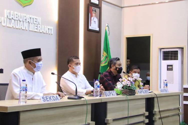 KEPULAUAN MERANTI, datariau.com - Bupati Meranti H Muhammad Adil SH gelar Rapat Penanganan Covid-19 dan Pemberlakuan Pembatasan Kegiatan Masyarakat (PPKM) Skala Mikro Tingkat Desa dan Kecamatan Sekabupaten Kepulauan Meranti di Gedung Hijau pada, malam (21/05/2021).