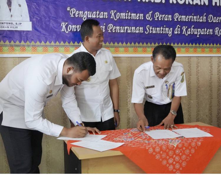 Acara rekonsiliasi stunting dihadiri Kepala dinas kesehatan, Dinas Sosial, Pengendalian Penduduk Keluarga Berencana, Badan Ketahanan Pangan, Dinas Pendidikab, Dinas Perumahan Kawasan Pemukiman, Dinas PUTR dan Dinas Pemberdayaan Masyarakat Desa, Kemenag dan KUA se Kabupaten Rokan Hilir, Dandim 0321 dan Kabid IKP Kominfo, Hasnul Yamin.