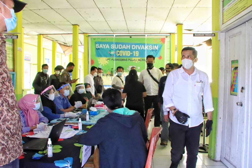 KEPULAUAN MERANTI, datariau.com - Bupati Meranti H Muhammad Adil SH lakukan Monitoring serta lakukan pengawasan Vaksin Covid-19 di UPT PKM Kecamatan Pulau Merbau dan Rangsang Pesisir bersama pihak Kesehatan Tim Medis dan Ketua AOK Kabupaten Kepulauan Meranti, Ahad (30/05/2021).