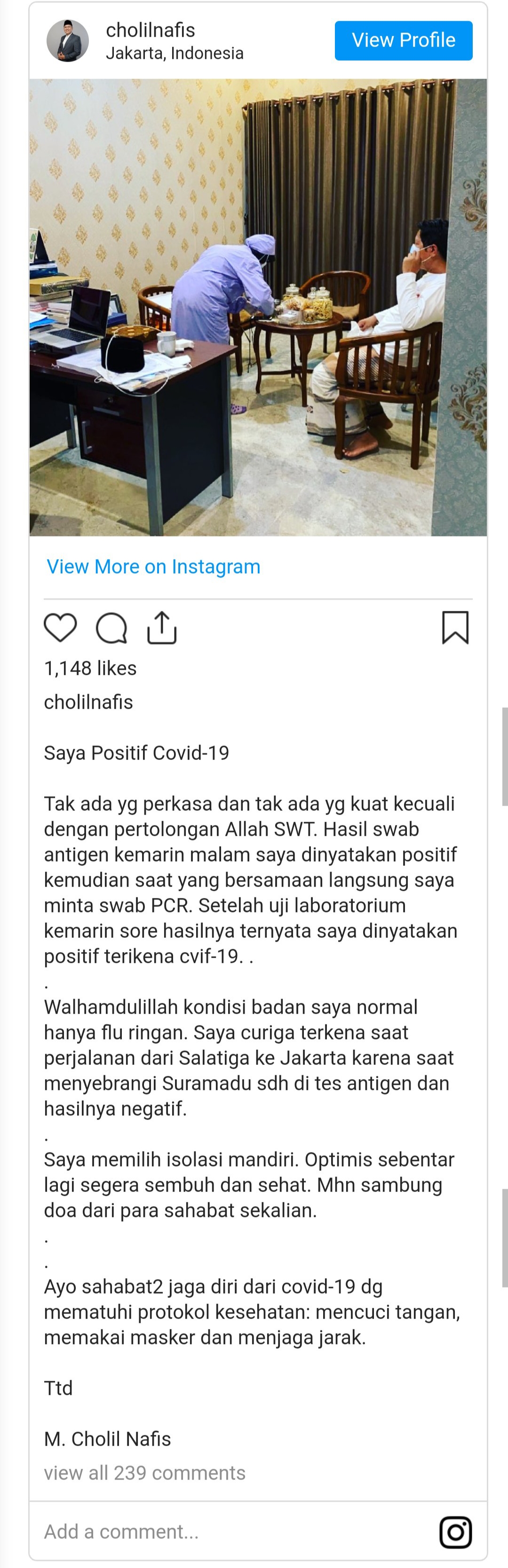 Ketua MUI Cholil Nafis Positif Covid-19