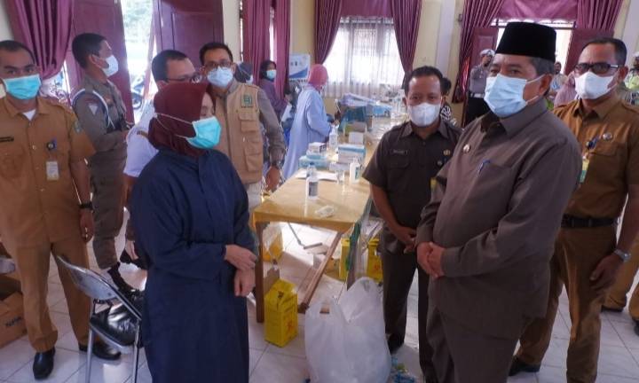 Bupati Siak Drs H Alfedri MSi saat tinjau vaksinasi massal di Bungaraya.