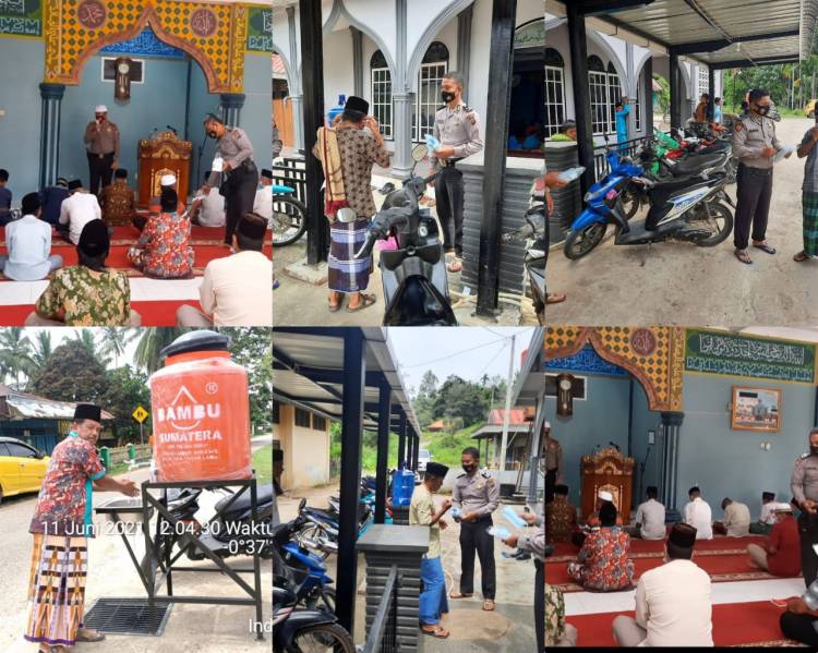 Polsek Hulu Kuantan Sosialisasi dan Bagi Masker ke Jama'ah Sholat Jum'at Mesjid Al Ikhwan