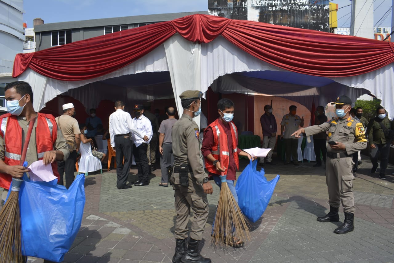 Puluhan Warga Kota Pekanbaru Diberikan Sanksi Sosial dan Sanksi Denda Saat Operasi Yustisi Gabungan