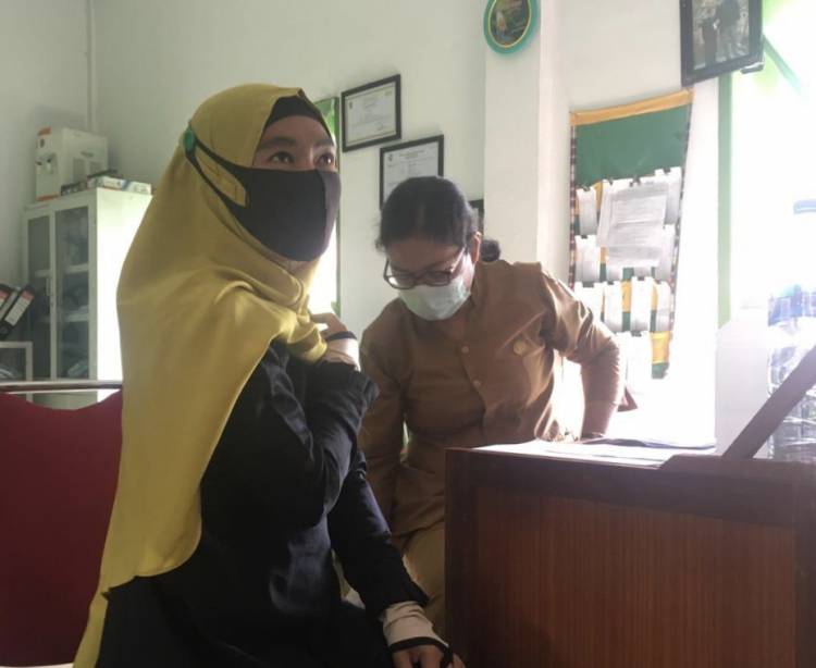 Terlihat Nyonya Linda sedang suntik vaksin di Puskesmas Balai Jaya.