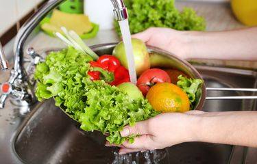 "Air keran yang mengalir adalah pilihan terbaik saat membersihkan buah dan sayuran," jelasnya.