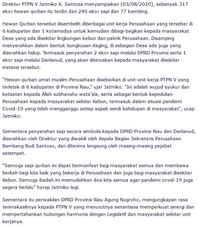 Sugeng: Sapi Kurban PTPN 5 Tidak Ada Diterima DPRD Riau