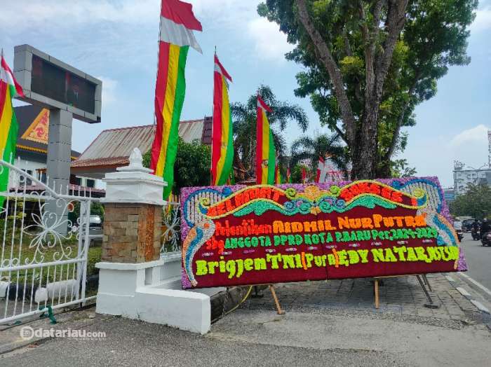 Besok 50 Anggota DPRD Pekanbaru 2024-2029 Dilantik, Karangan Bunga Mulai Menghiasi Gedung Payung Sekaki