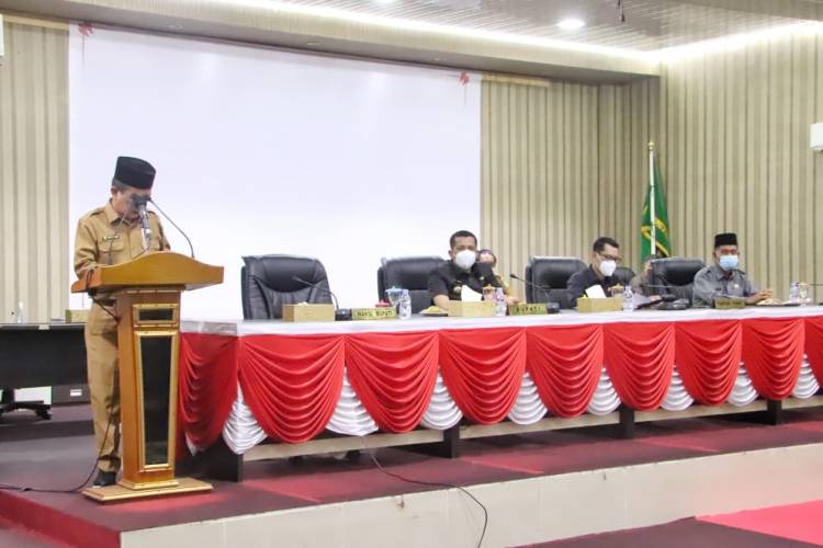 KEPULAUAN MERANTI, datariau.com - Bupati Meranti H Muhammad Adil SH ikuti Rapat Paripurna DPRD tentang Pandangan Umum masing-masing Fraksi tentang Raperda Rencana Pembagunan Jangkah Menengah Derah Kabupaten Kepulauan Meranti Tahun 2021-2026, Selasa (27/7/2021).