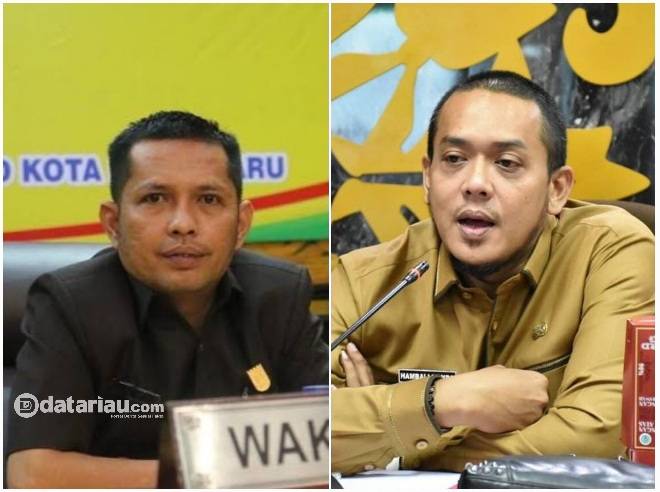 Wakil Ketua DPRD Pekanbaru Tengku Azwendi Fajri (kiri) dan Sekwan Hambali Nanda Manurung (kanan).