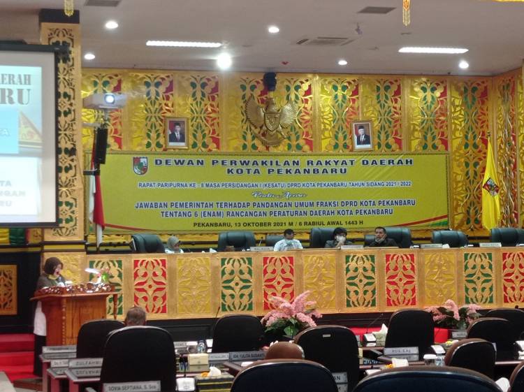 Suasana rapat paripurna ke-8 masa sidang kesatu tahun 2021/2022 dengan agenda jawaban pemerintah terhadap pandangan umum fraksi DPRD Pekanbaru tentang Enam Ranperda.
