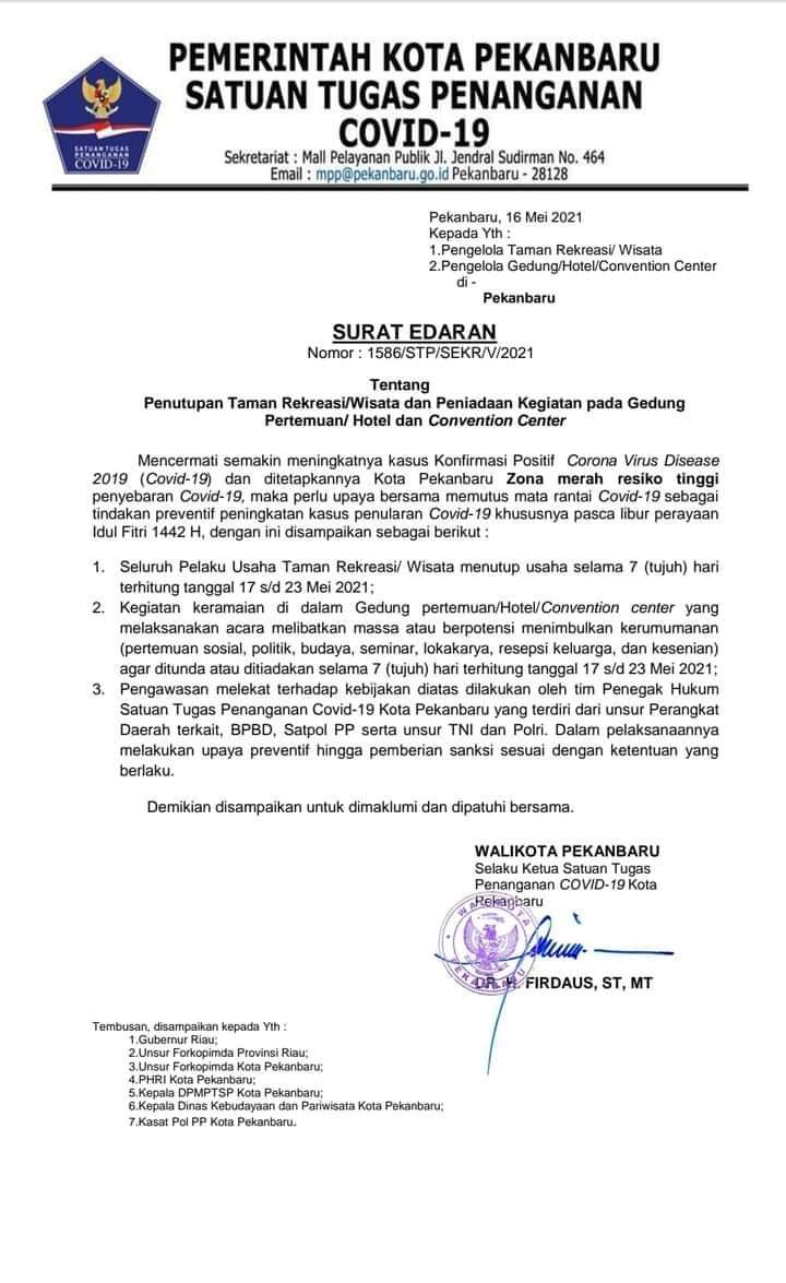 Walikota Minta Semua Wisata di Pekanbaru Tutup Hingga 23 Mei 2021, Warga Diminta Patuh