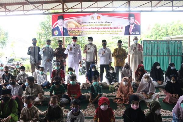 Selain meresmikan rumah Tahsin dan Tahfidz, kedua politisi Gerindra ini juga memberikan kado HUT Ke-76 RI kepada 37 santri serta warga di masjid Ar-Raudah, Selasa (17/8/2021).