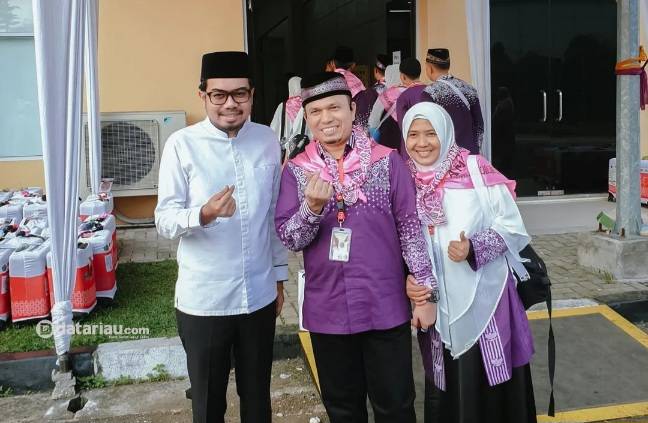 Ginda Burnama saat foto bersama Ketua DPRD Kota Pekanbaru Muhammad Sabarudi saat akan berangkat haji ke Tanah Suci.