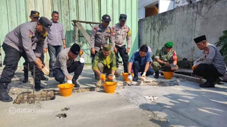 Anggota DPRD Pekanbaru, Achmad Faisal Reza, ikut melakukan peletakan batu pertama pembangunan Mushala An-Nusirwan di kawasan Makopolsek Binawidya, Kamis (5/2/2026).