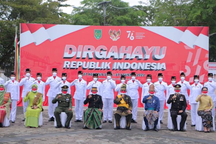 Bupati HM. Wardan yang bertindak selaku Inspektur Upacara pada HUT Proklamasi RI ke-76 tahun 2021 dengan menggunakan baju adat Melayu turut dihadiri Wakil Bupati H. Syamsuddin Uti, unsur pimpinan Forkopimda, unsur TNI-Polri, Sekda Inhil, Pimpinan OPD serta Veteran yang ada di Kabupaten Indragiri Hilir.